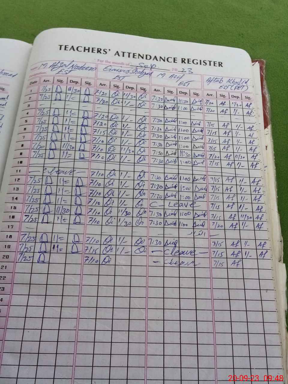 | CNIC | Full Name | Designation | R/C | Absence During Last Calender Month |
