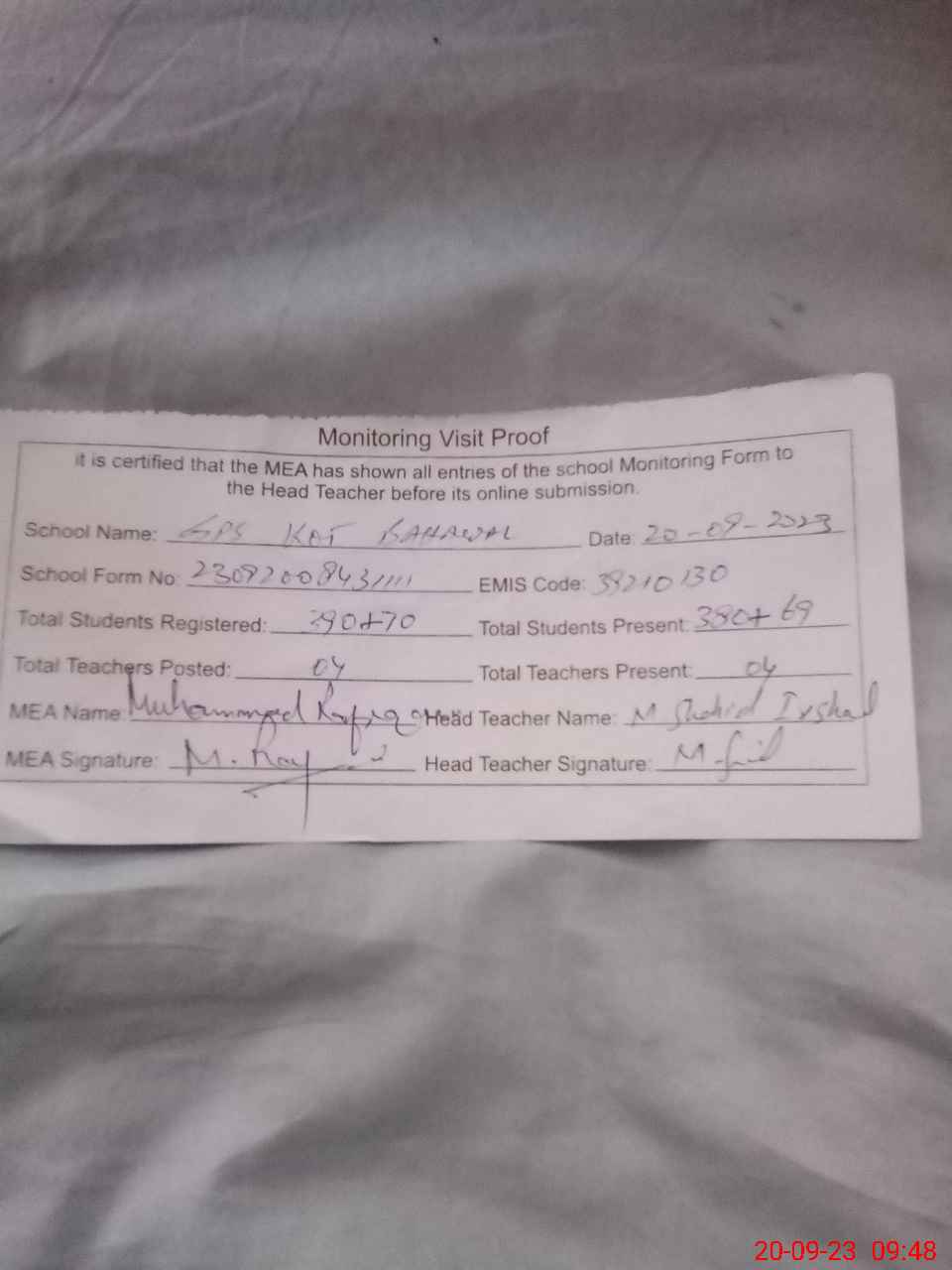 | EMIS Code: 39210130 | Name of School: GPS KOT BAHAWAL | |||