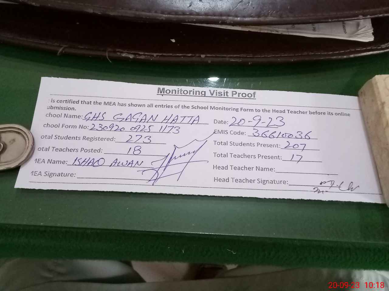 | EMIS Code: 36610036 | Name of School: GHS GAGAN HATTA 100 M | |||