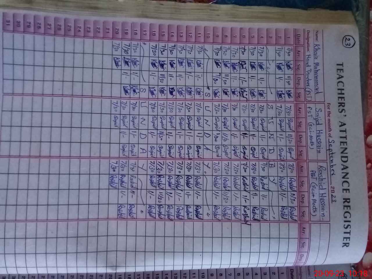 | Name: Sa**** Al**** Designation: (School Headmaster's/Headmistress's) PST Head Phone/Cell Number: 03**** |