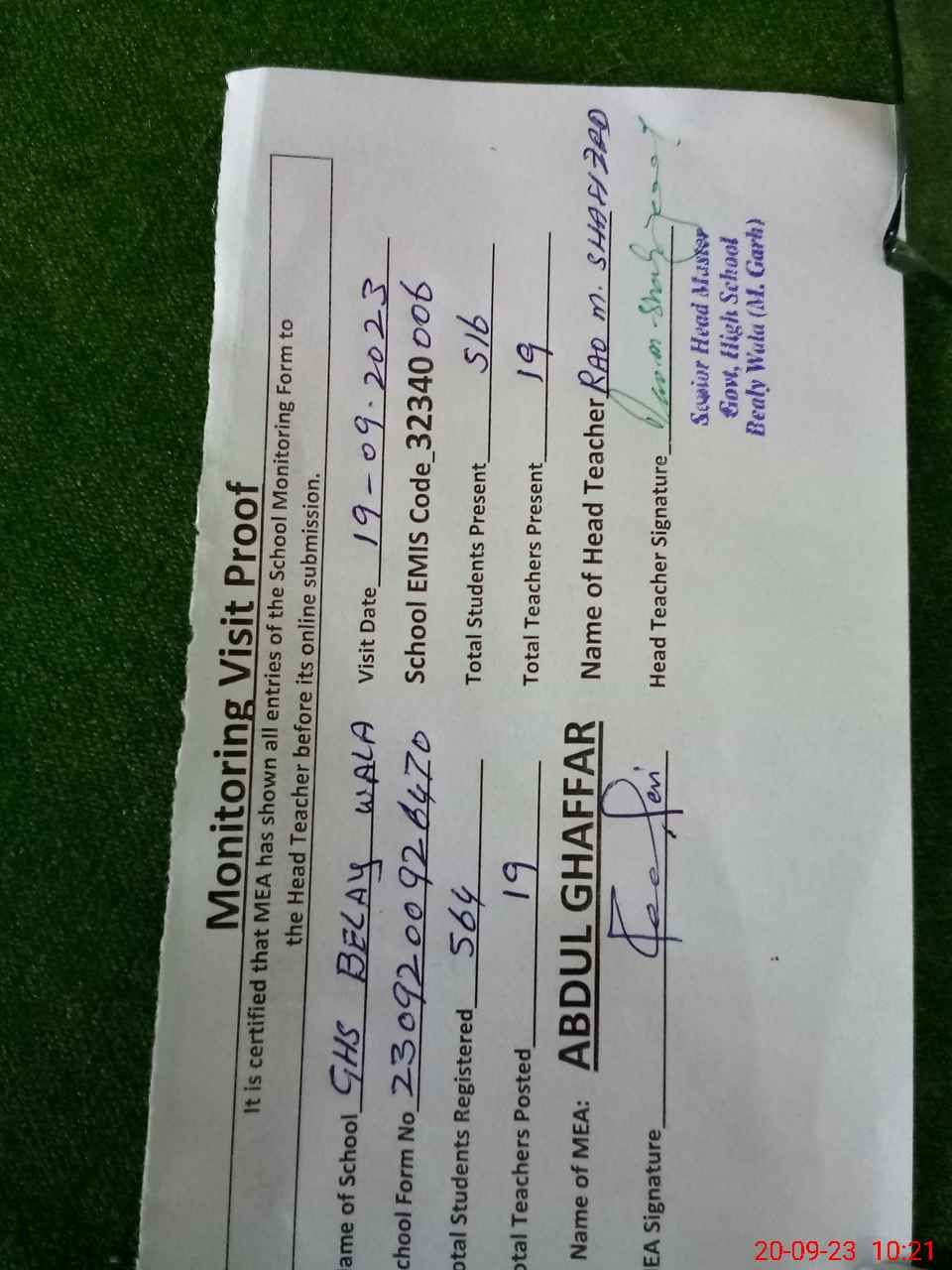 | EMIS Code: 32340006 | Name of School: GHS BELAY WALA | |||