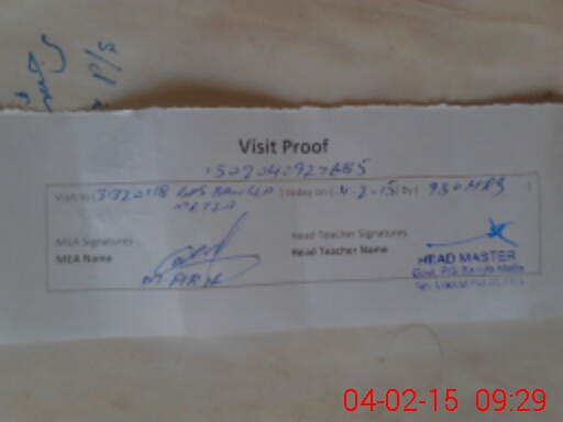 | Attendance Register | Head Teacher | MEA with School | Visit Proof |