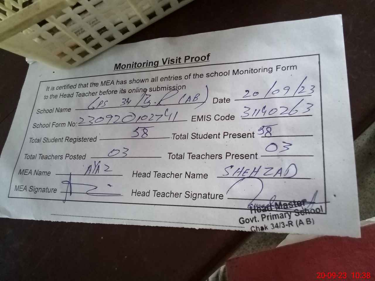 | EMIS Code: 31140263 | Name of School: GPS CHAK NO.34/3-R AB | |||