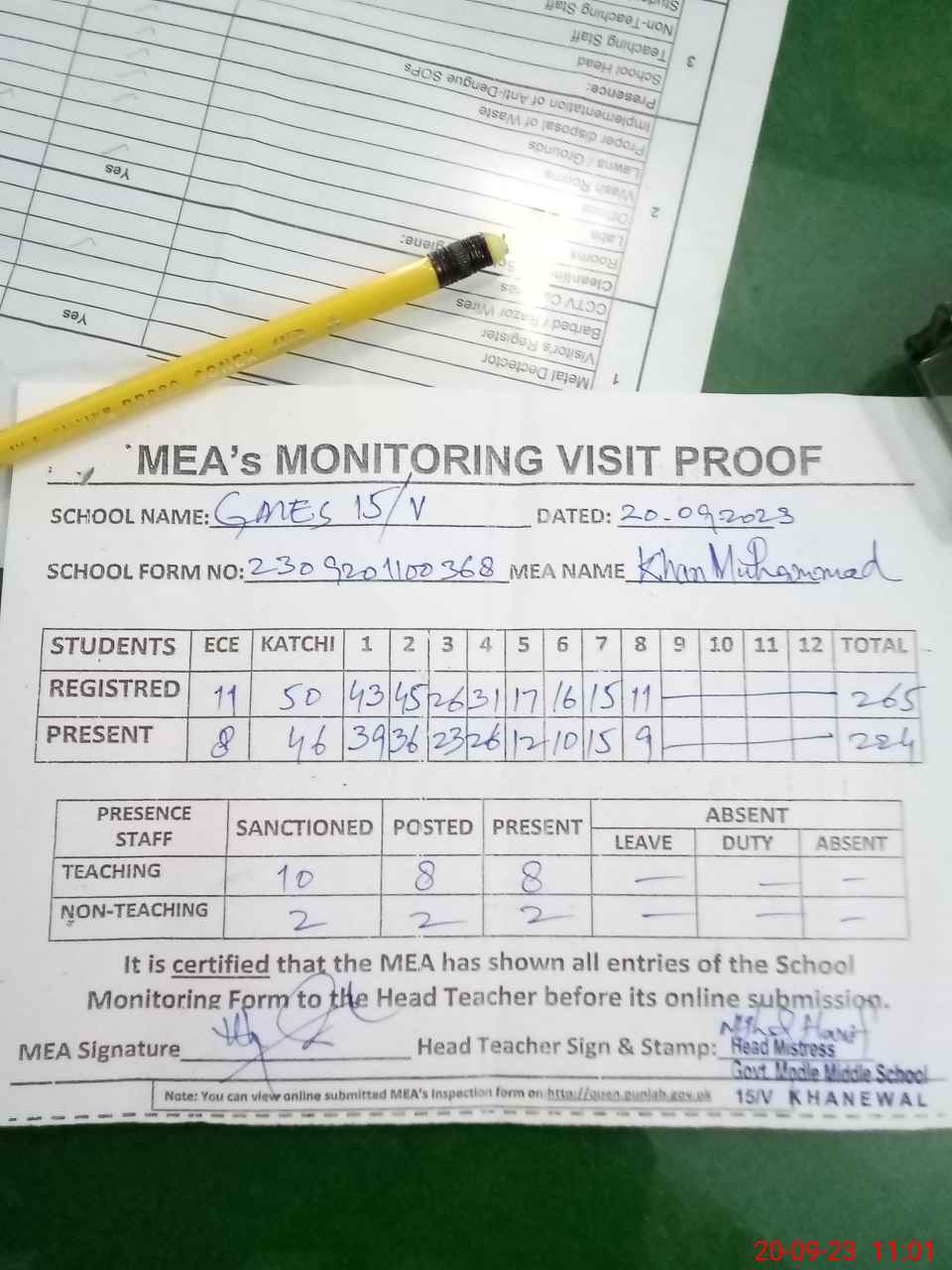 | EMIS Code: 36420424 | Name of School: GMES 15/V, KHANEWAL | |||