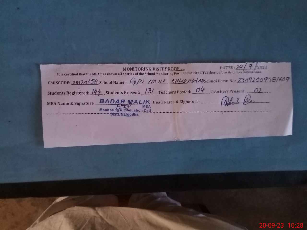 | EMIS Code: 38420258 | Name of School: GPS AHLI RAWAN CHAK NO. 110 SB | |||