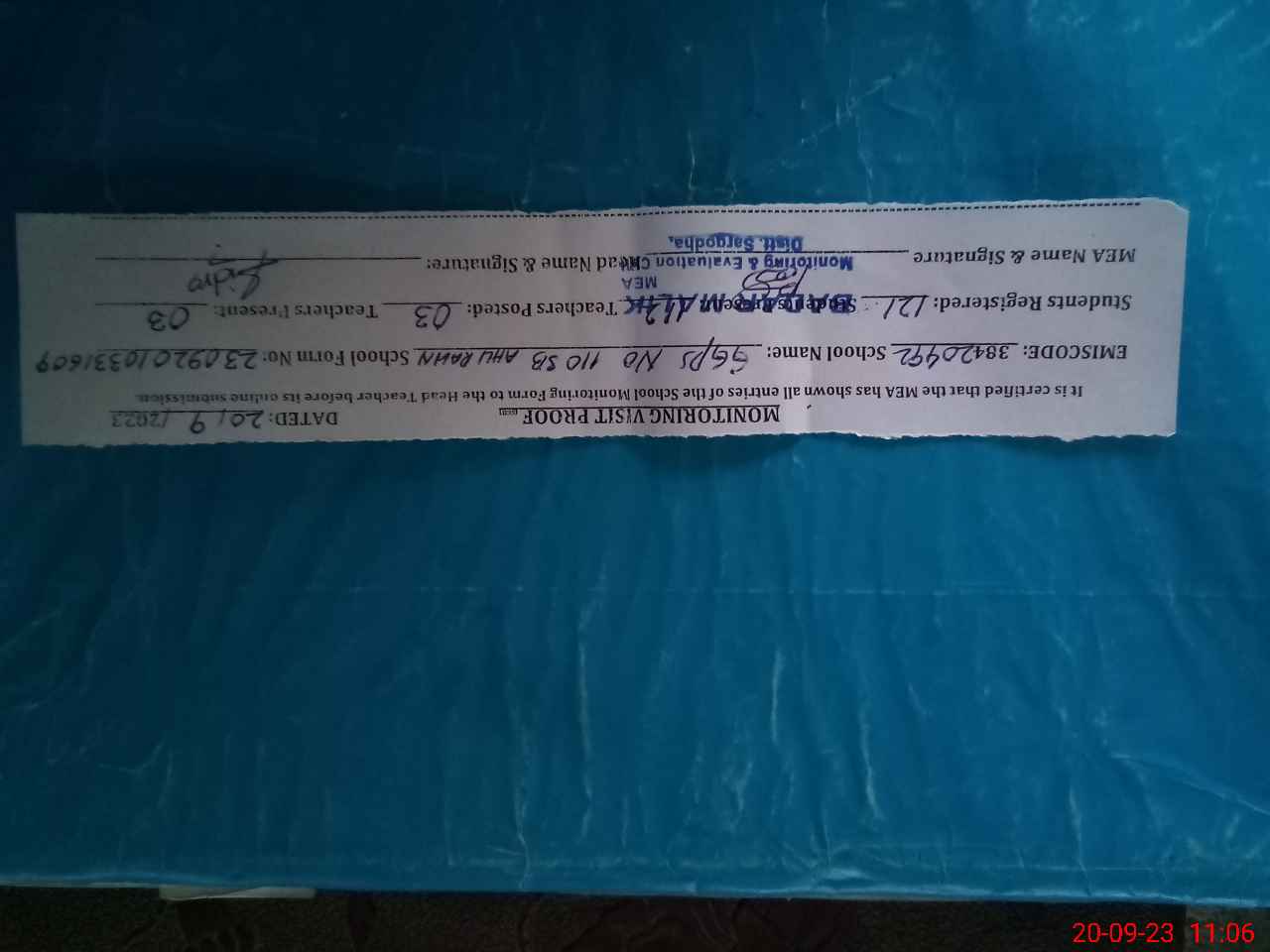 | Monitoring Date: 20-09-2023 | Start Time: 20-09-2023 10:33 AM | End Time: 20-09-2023 11:11 AM | Name of MEA: BA**** MU**** | |