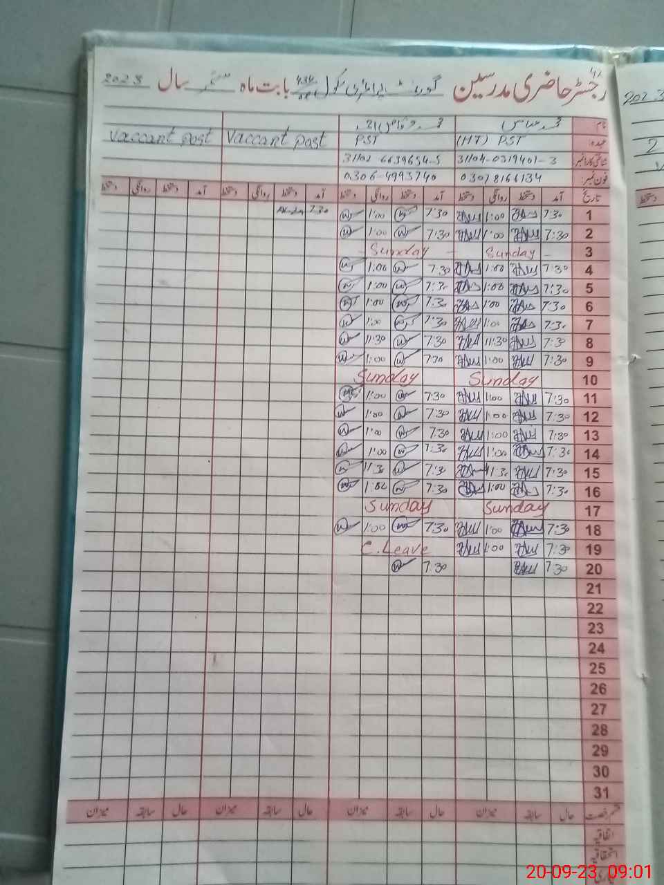 | Name: MU**** AB**** Designation: (School Headmaster's/Headmistress's) PST Phone/Cell Number: 03**** |
