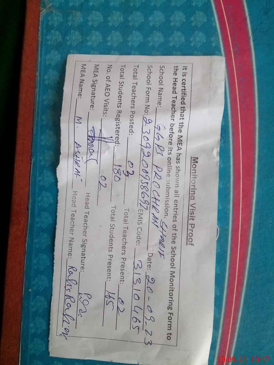 | EMIS Code: 31310465 | Name of School: GGPS PROCHRAN SHARIF | |||