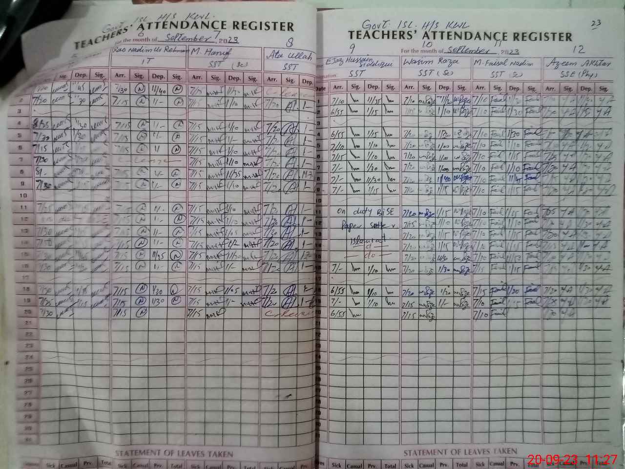 | Monitoring Date: 20-09-2023 | Start Time: 20-09-2023 09:16 AM | End Time: 20-09-2023 11:37 AM | Name of MEA: Sh**** Na**** | |