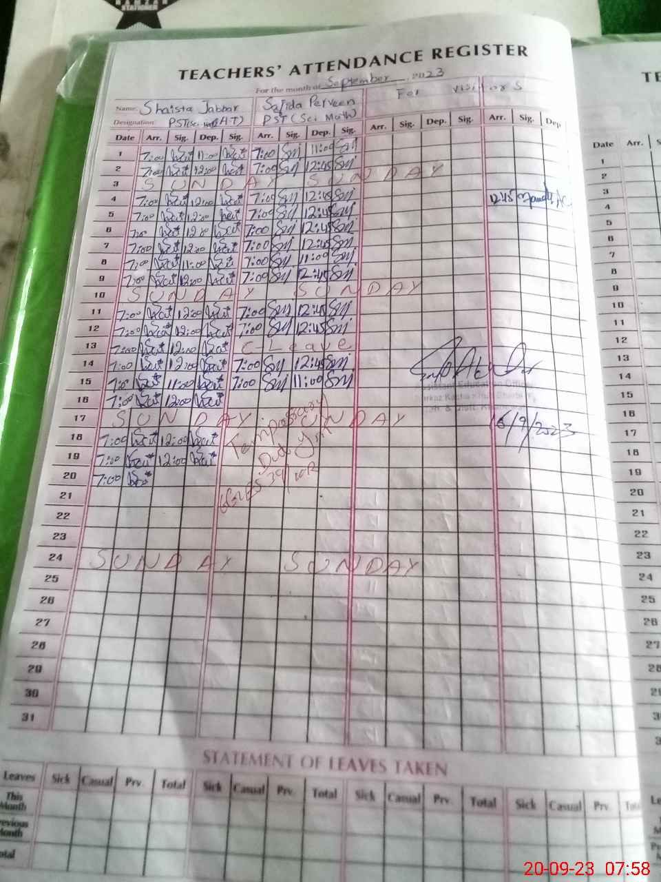 | Name: Sh**** Ja**** Designation: (School Headmaster's/Headmistress's) PST Phone/Cell Number: 03**** |