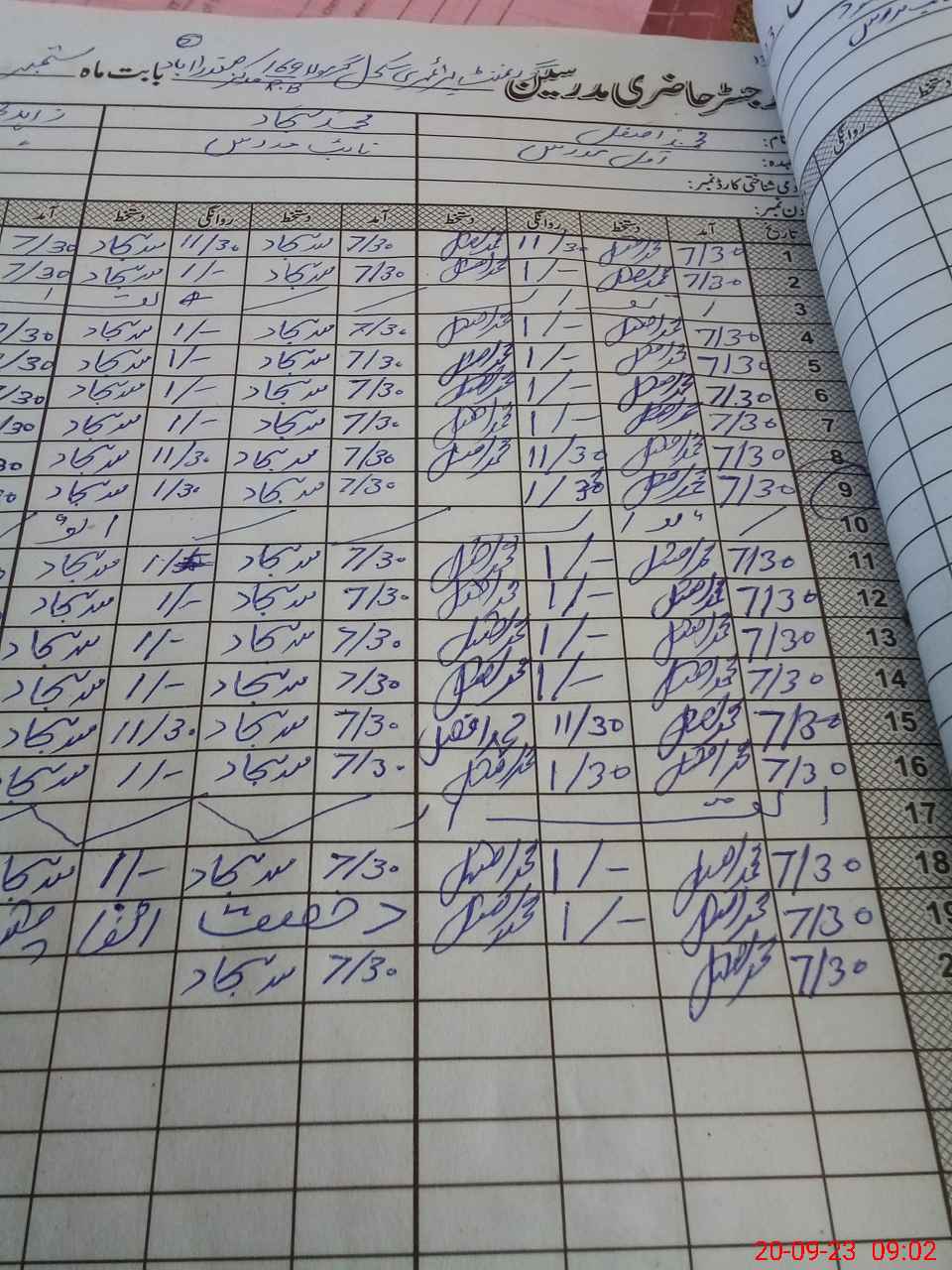 | CNIC | Full Name | Designation | R/C | Absence During Last Calender Month |