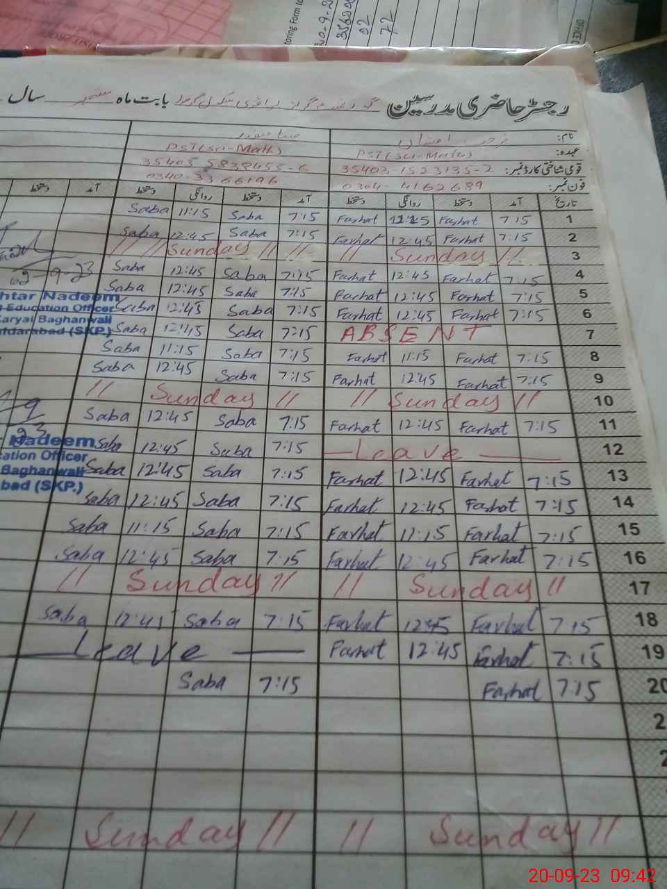 | Name: FA**** AF**** Designation: (School Headmaster's/Headmistress's) ESE SCI MATH Phone/Cell Number: 03**** |