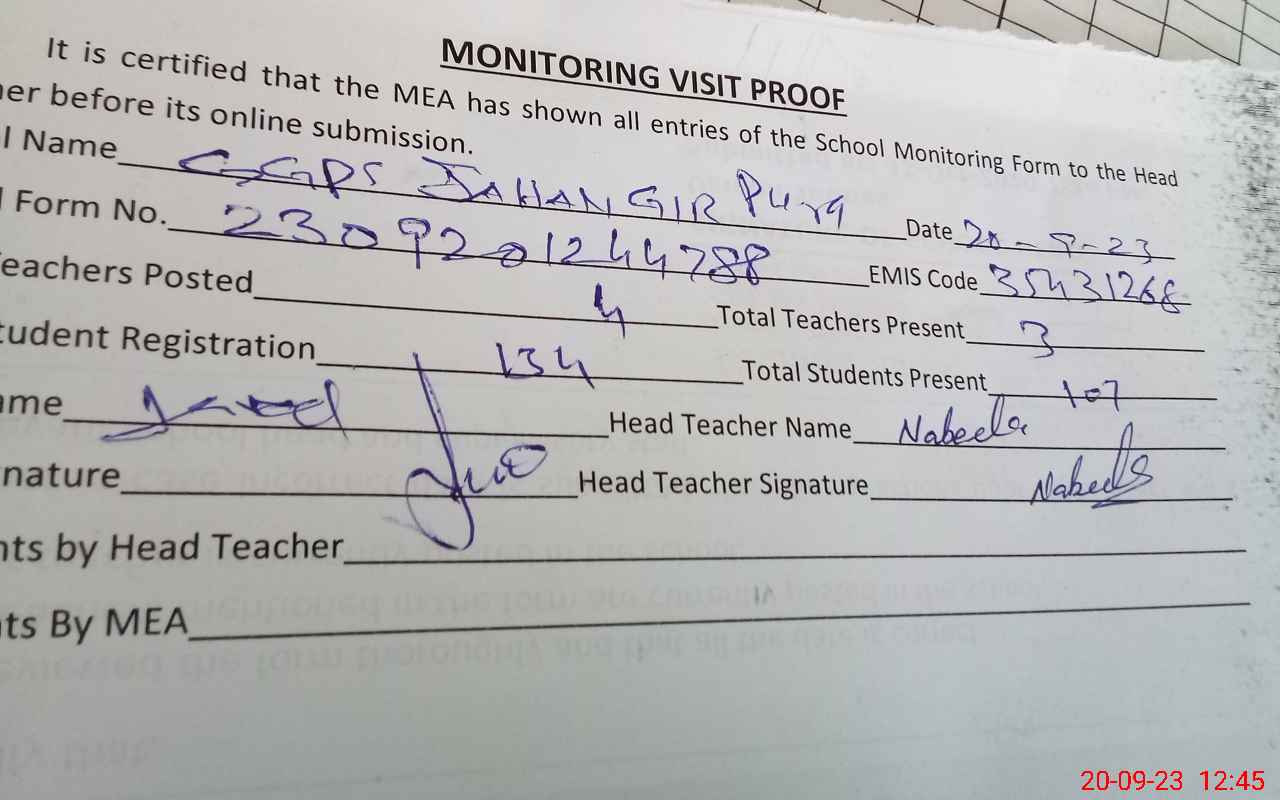 | EMIS Code: 35431268 | Name of School: GGPS JAHANGIR PURA | |||