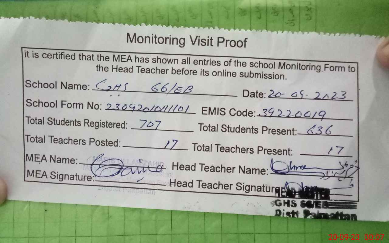 | EMIS Code: 39220019 | Name of School: GHS 66/EB ARIFWALA | |||