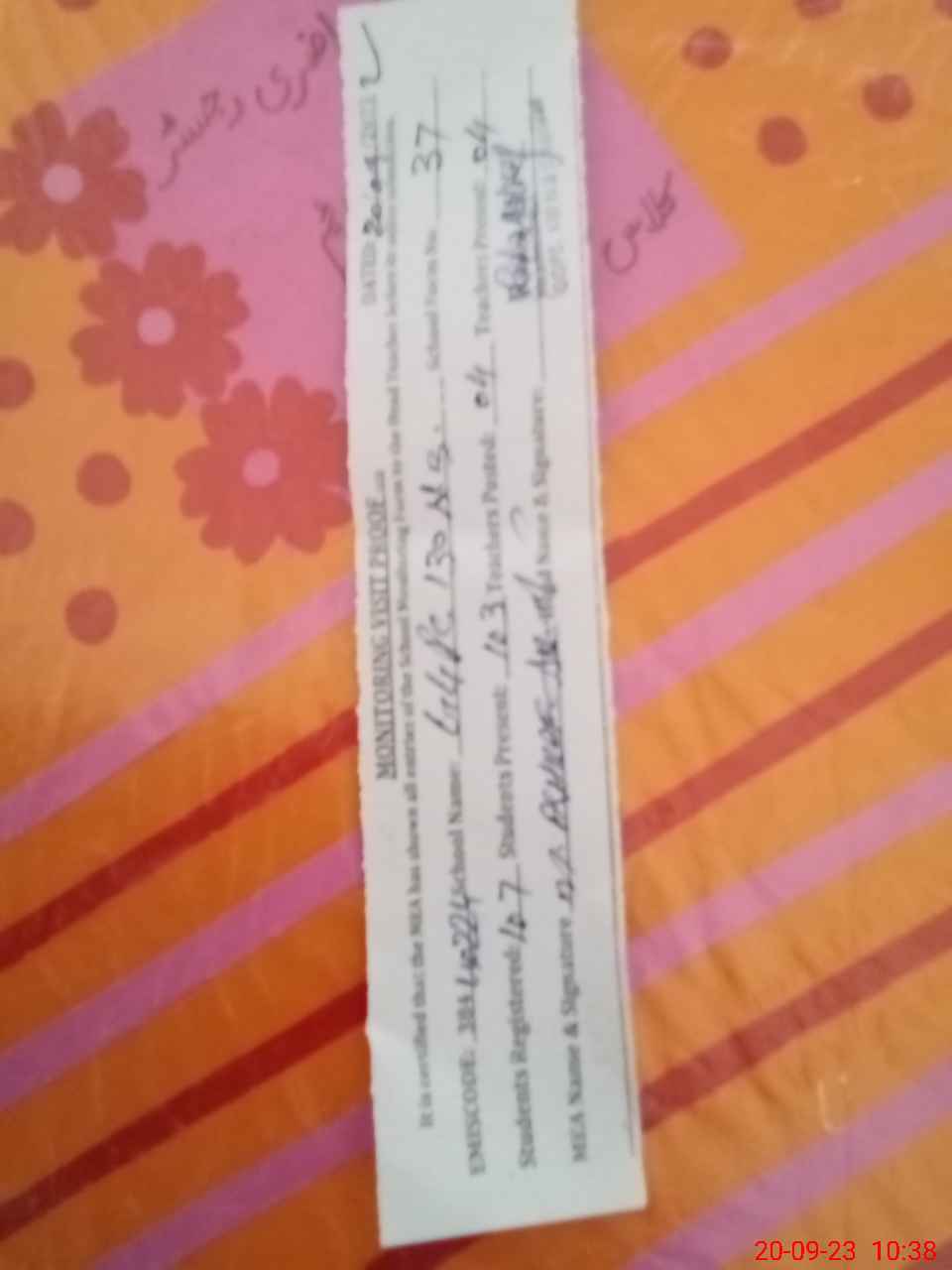 | Attendance Register | Head Teacher | MEA with School | Visit Proof |
