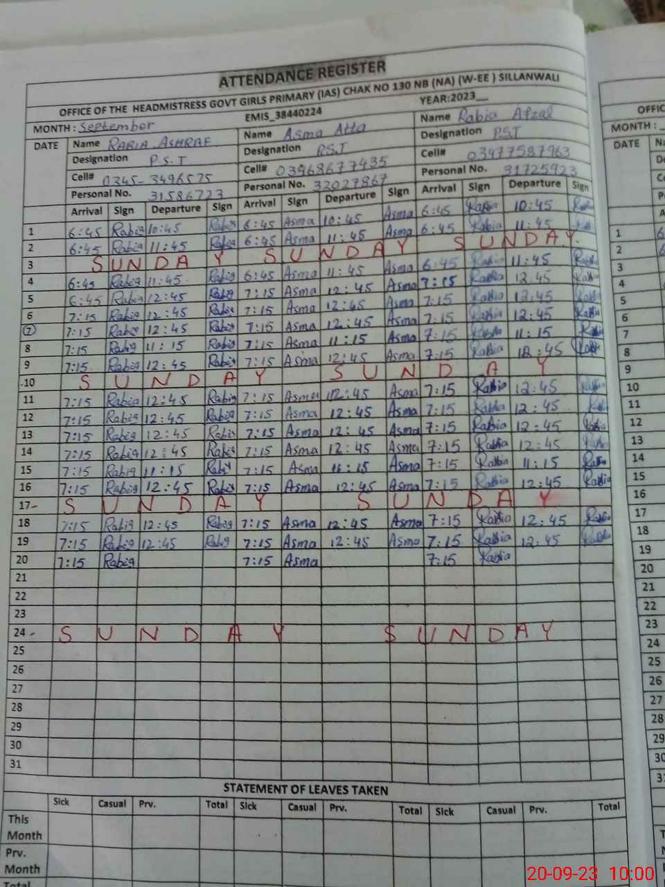 | Name: Re**** Ba**** Designation: (School Headmaster's/Headmistress's) PST Phone/Cell Number: 03**** |