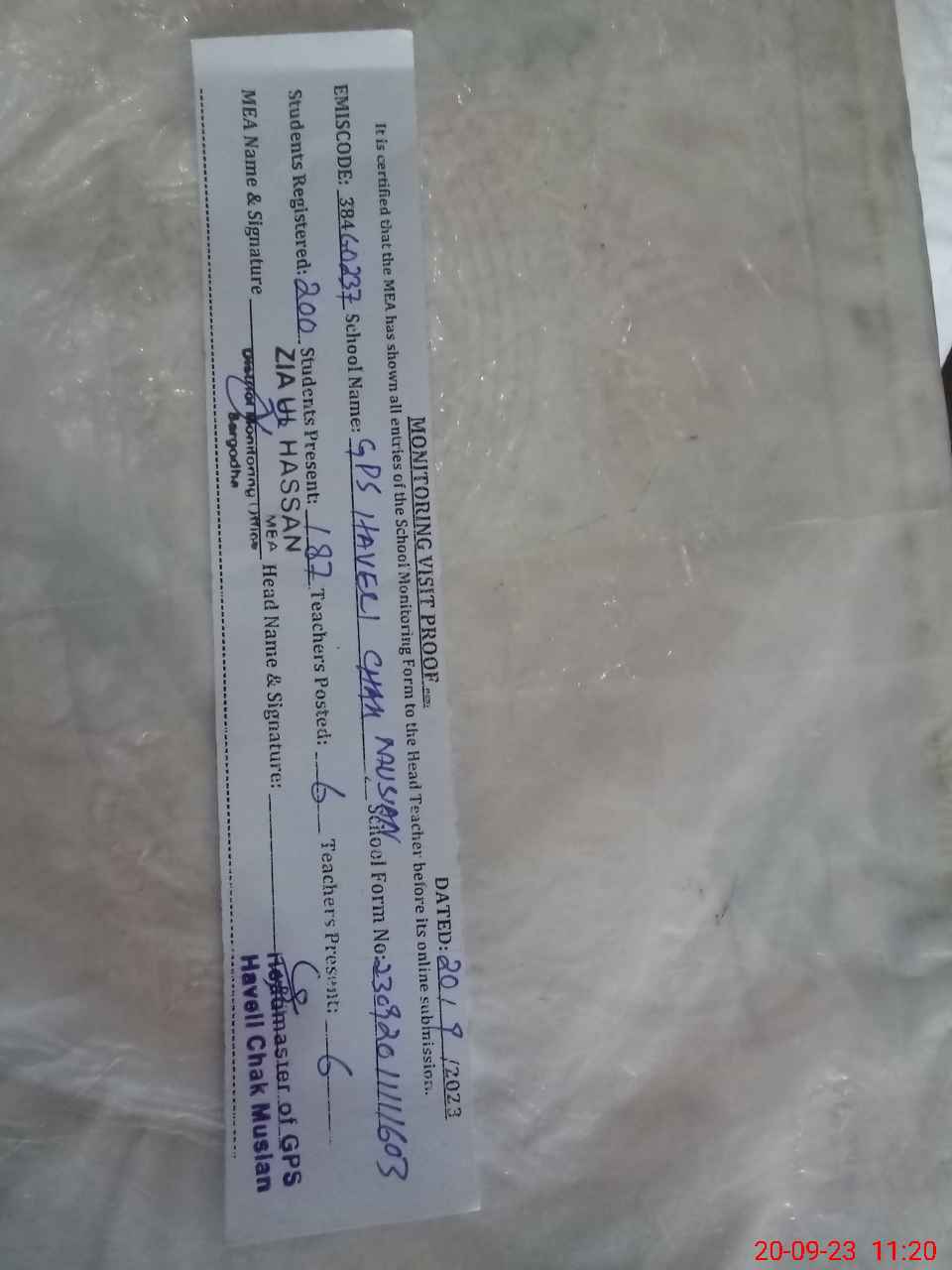 | EMIS Code: 38460237 | Name of School: GPS HAVELI CHAK MUSIAN | |||