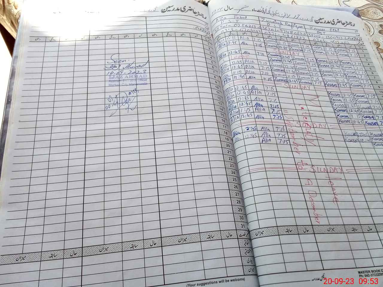| CNIC | Full Name | Designation | R/C | Absence During Last Calender Month |