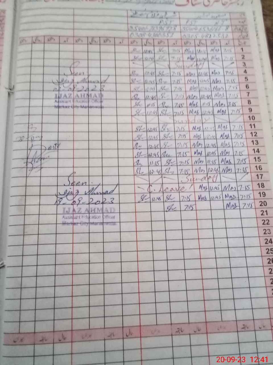 | CNIC | Full Name | Designation | R/C | Absence During Last Calender Month |