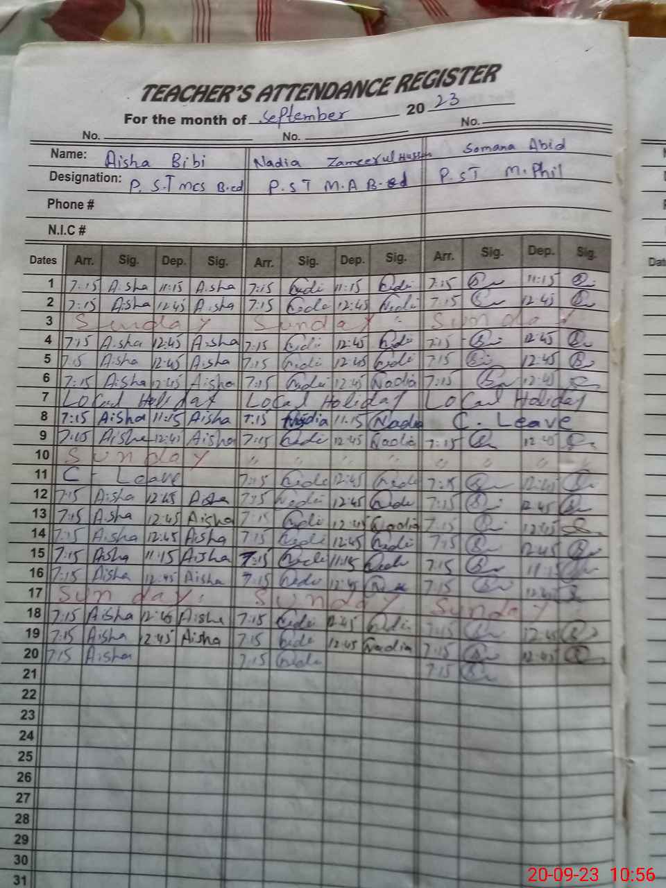 | Name: Ai**** Bi**** Designation: (School Headmaster's/Headmistress's) PST Phone/Cell Number: 03**** |
