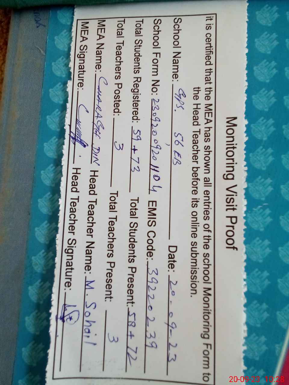 | EMIS Code: 39220239 | Name of School: GPS 56 EB | |||