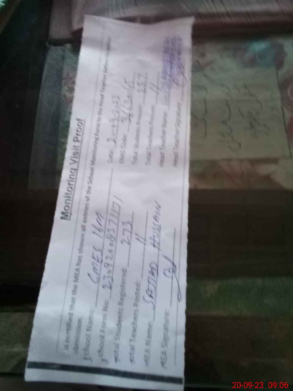 | Attendance Register | Head Teacher | MEA with School | Visit Proof |