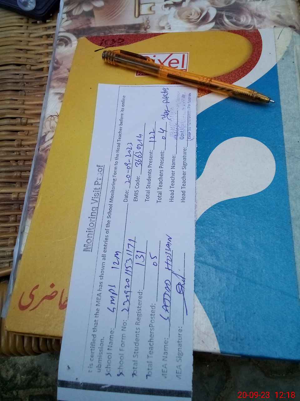 | Attendance Register | Head Teacher | MEA with School | Visit Proof |
