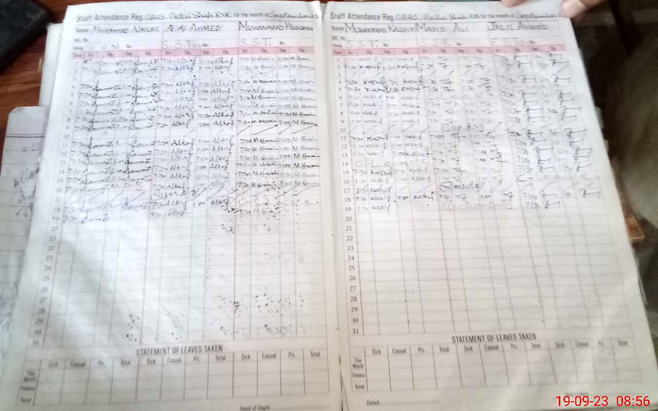 | CNIC | Full Name | Designation | R/C | Absence During Last Calender Month |