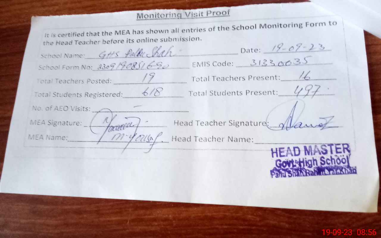 | EMIS Code: 31330035 | Name of School: GHS PULLO SHAH | |||