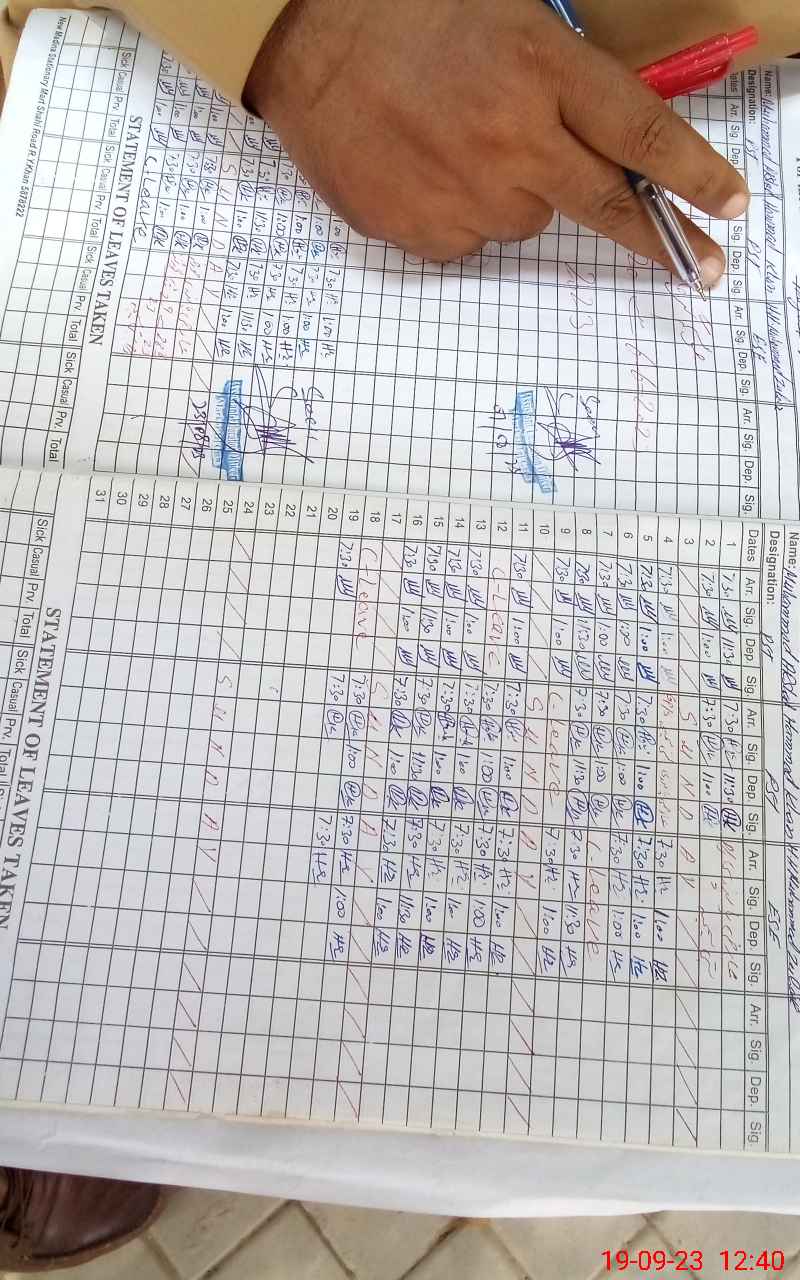 | CNIC | Full Name | Designation | R/C | Absence During Last Calender Month |