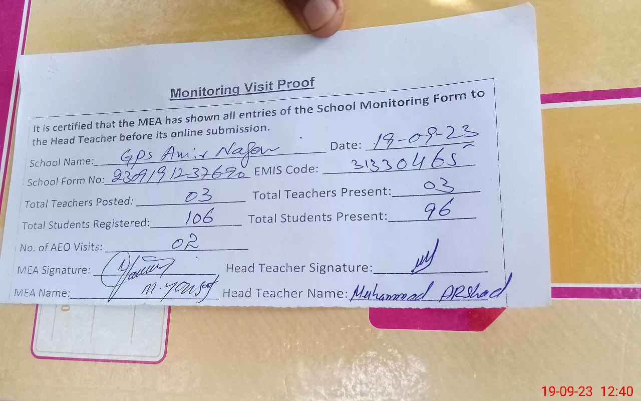 | EMIS Code: 31330465 | Name of School: GPS AMIR NAGAR | |||