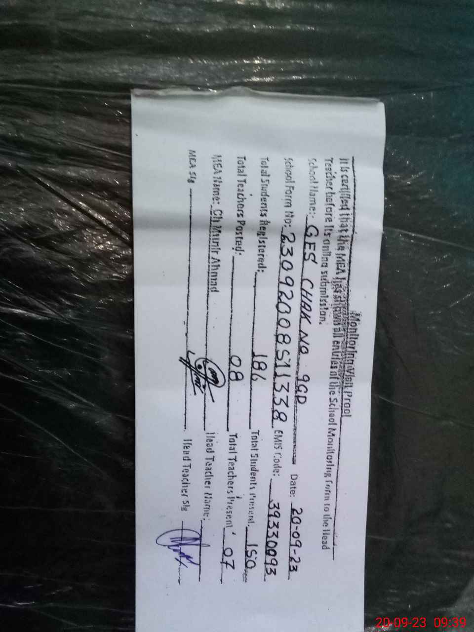 | EMIS Code: 39330093 | Name of School: GES CHAK 9 GD | |||