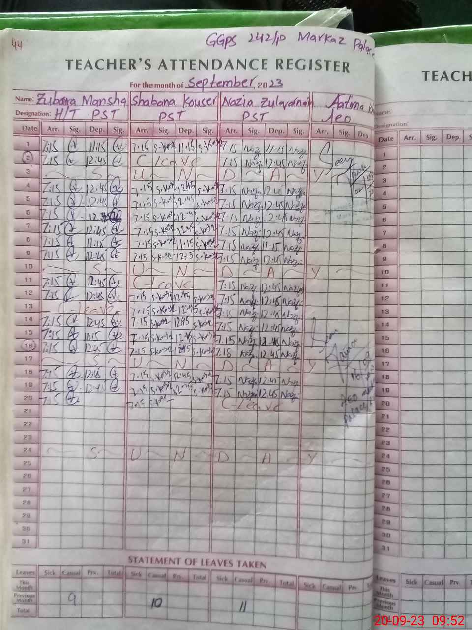 | Name: Zu**** Ma**** Designation: (School Headmaster's/Headmistress's) P S T Phone/Cell Number: 03**** |