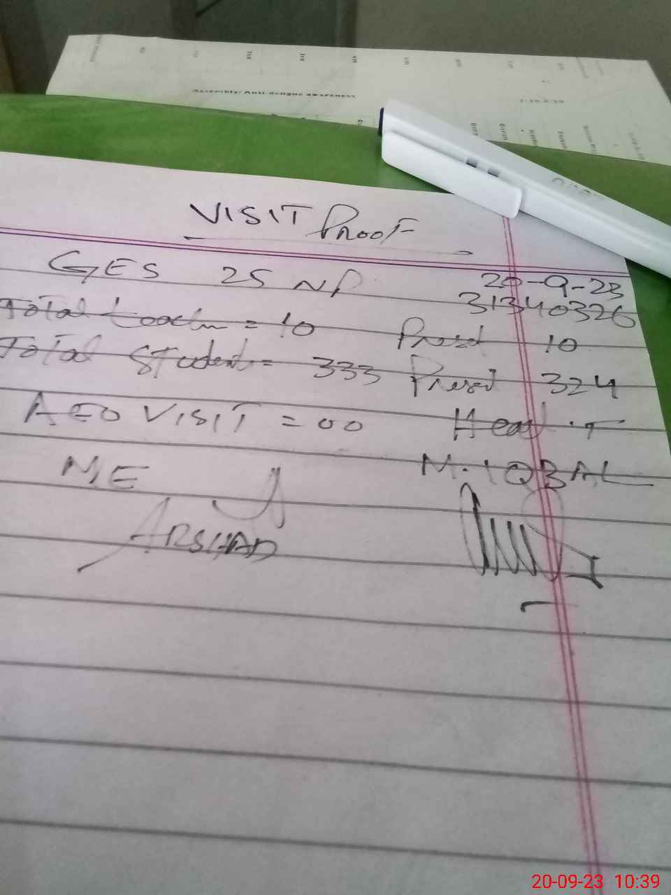 | EMIS Code: 31340326 | Name of School: GES CHAK NO 25/NP | |||