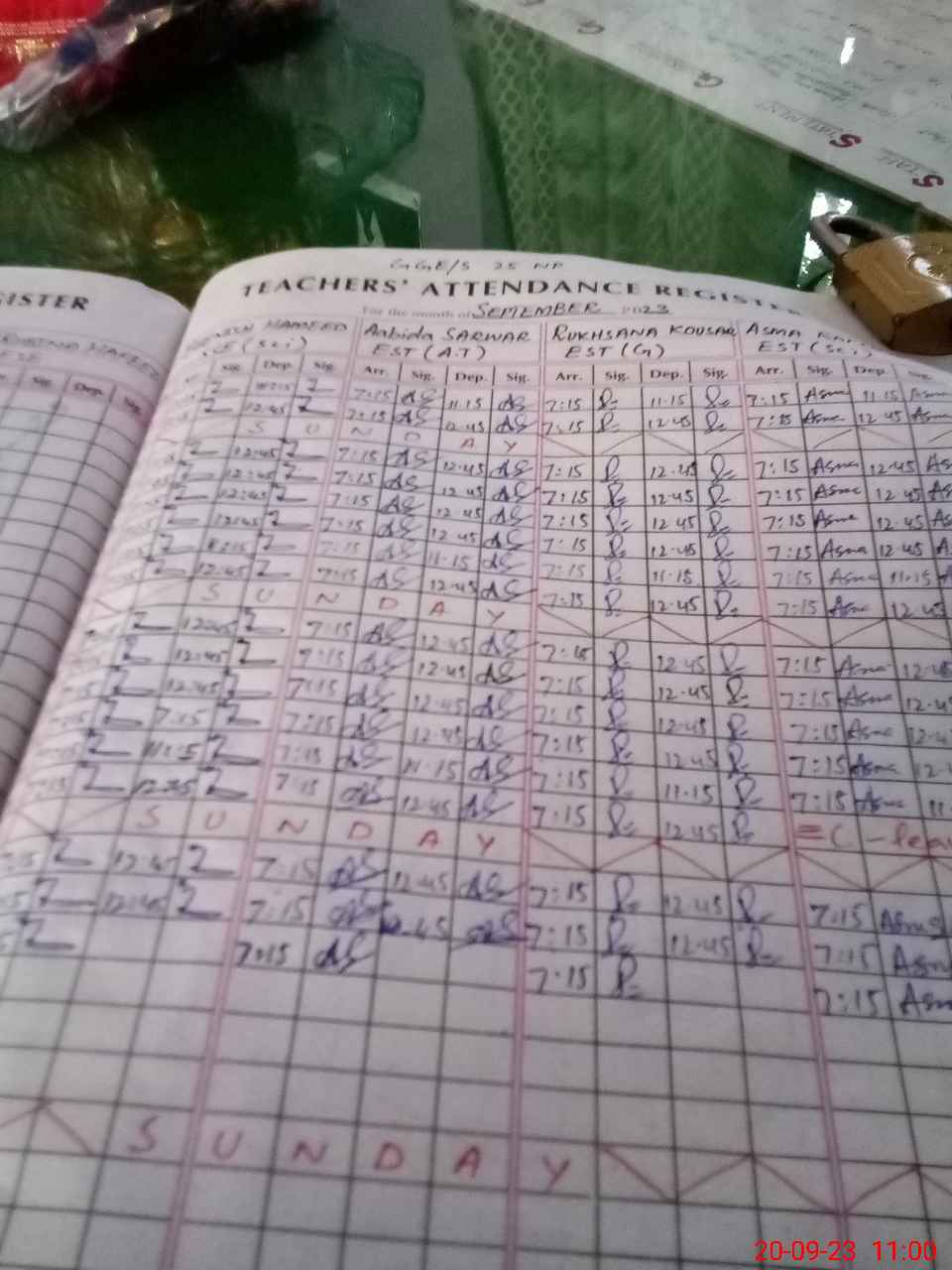 | CNIC | Full Name | Designation | R/C | Absence During Last Calender Month |