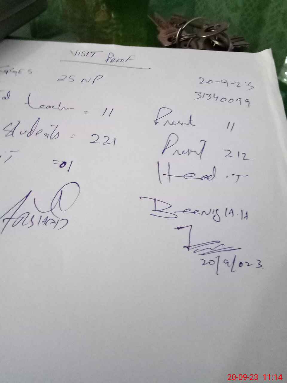 | Attendance Register | Head Teacher | MEA with School | Visit Proof |