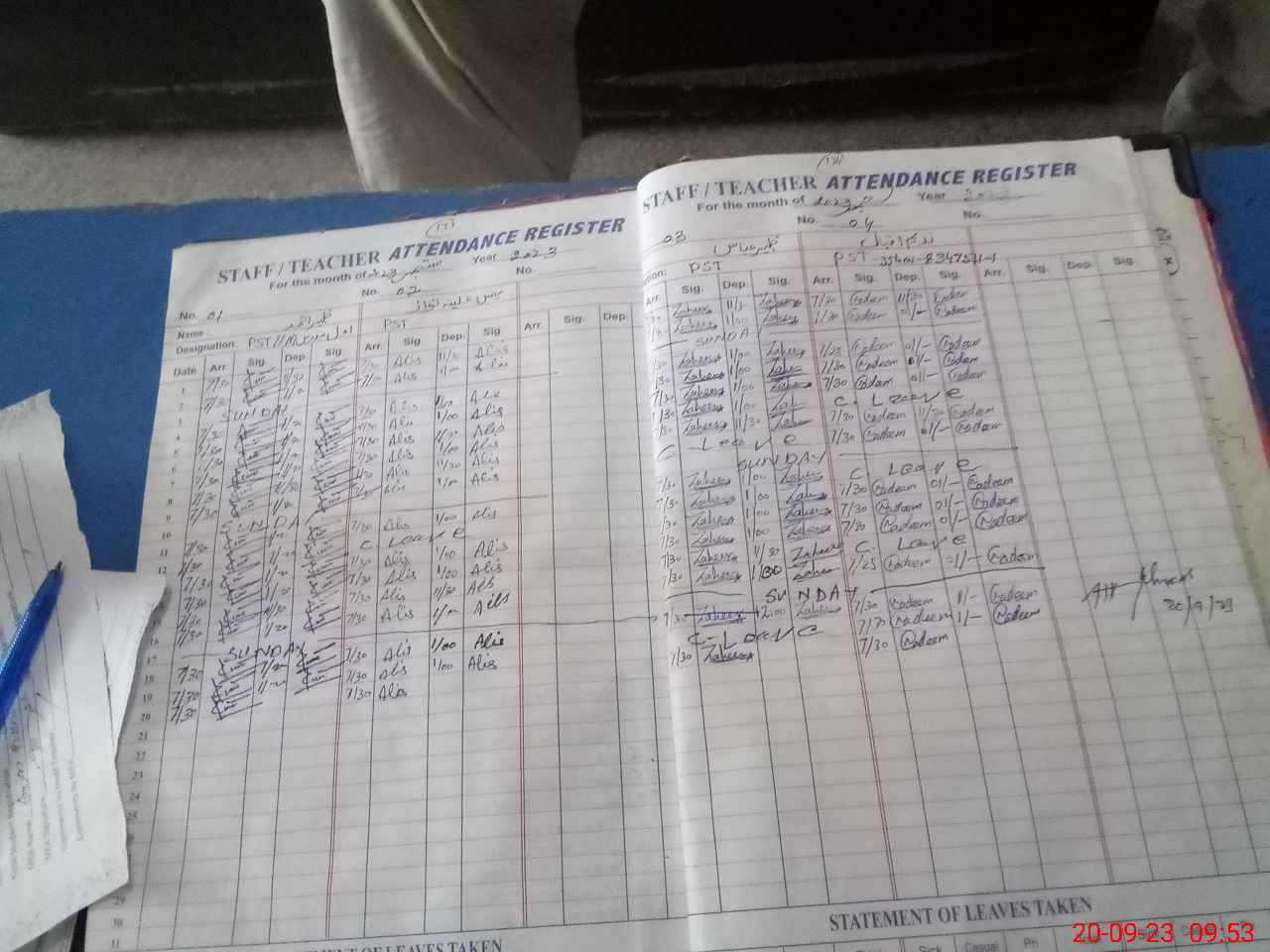 | Name: RI**** SA**** Designation: (School Headmaster's/Headmistress's) PST Phone/Cell Number: 03**** |