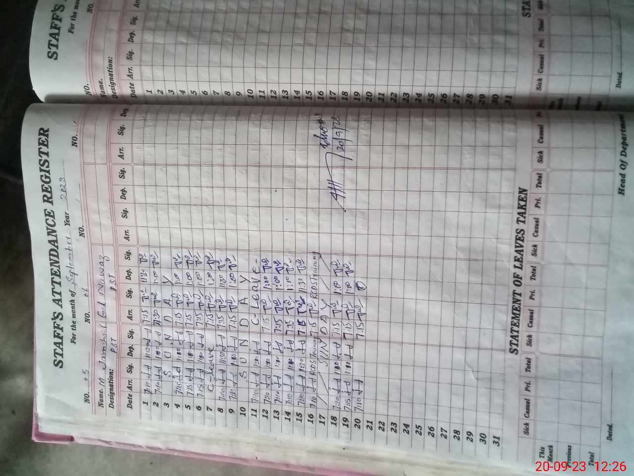 | Leave | Duty | Absent | Maternity | Medical | Ex- Pak |