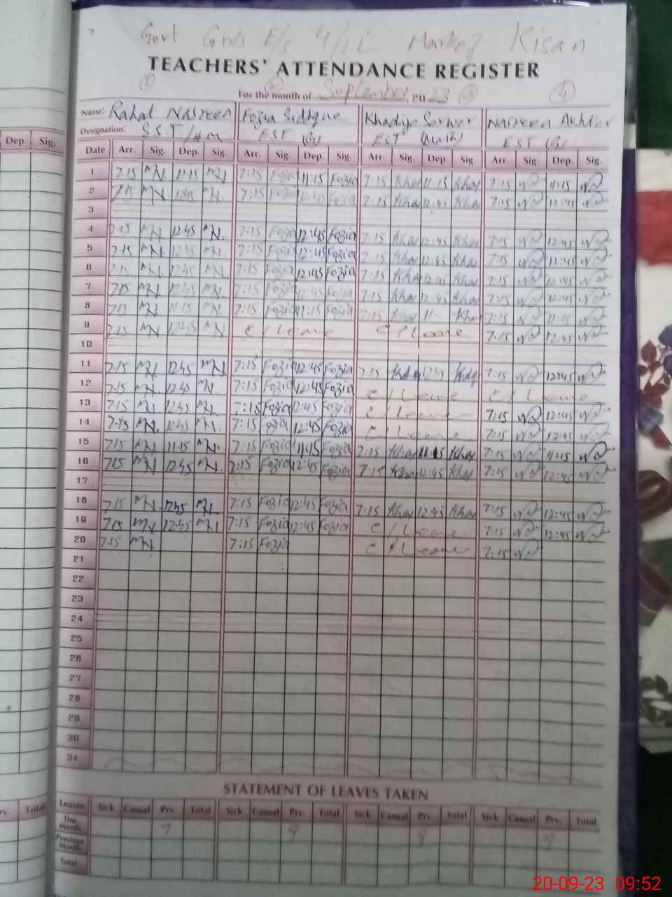 | Leave | Duty | Absent | Maternity | Medical | Ex- Pak |