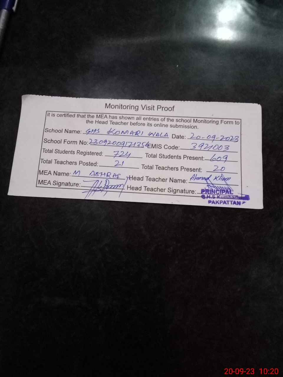 | EMIS Code: 39210003 | Name of School: GHS KUMHARAI WALA | |||