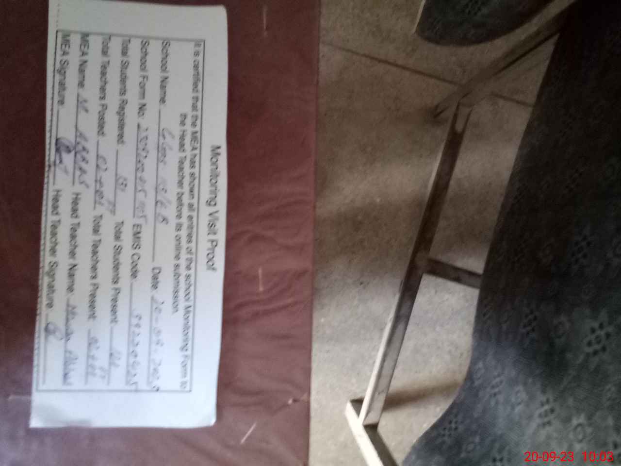 | Certified that this School was Inspected by the Undersigned MEA/DMO Today and the Information Stated Above is as Per Record. | |||||