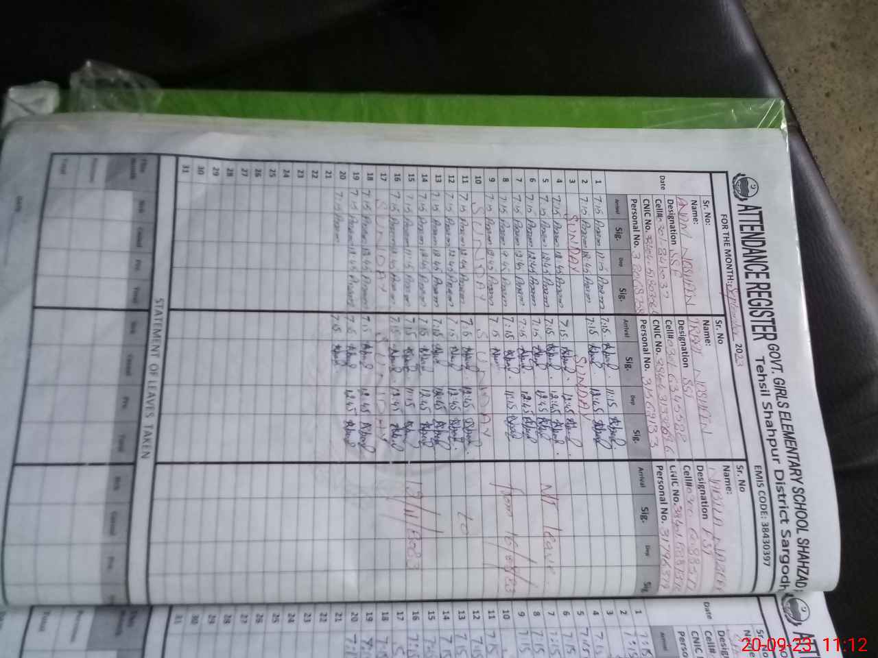 | Name: IR**** NO**** Designation: (School Headmaster's/Headmistress's) SST Phone/Cell Number: 03**** |