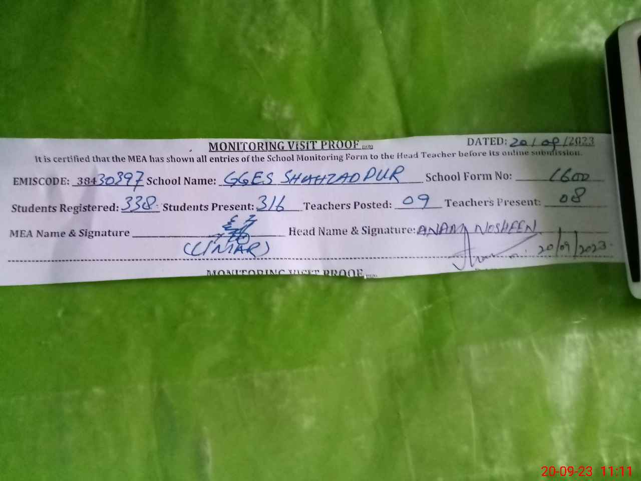 | EMIS Code: 38430397 | Name of School: GGES SHAHZAD PUR | |||