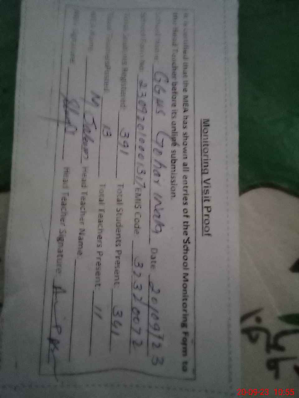 | EMIS Code: 32320072 | Name of School: GGHS GOHAR WALA | |||