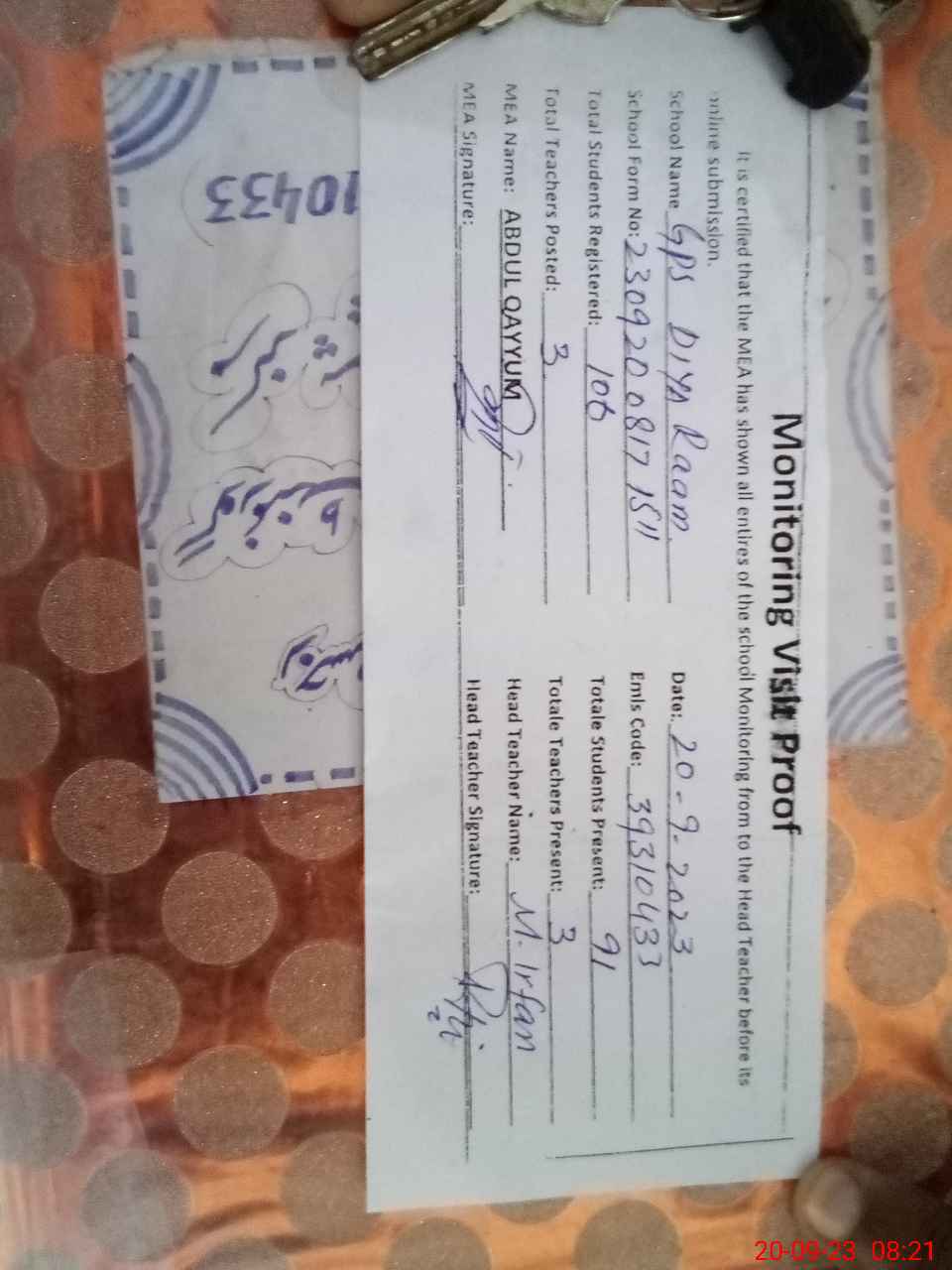 | EMIS Code: 39310433 | Name of School: GPS DIYA RAAM | |||