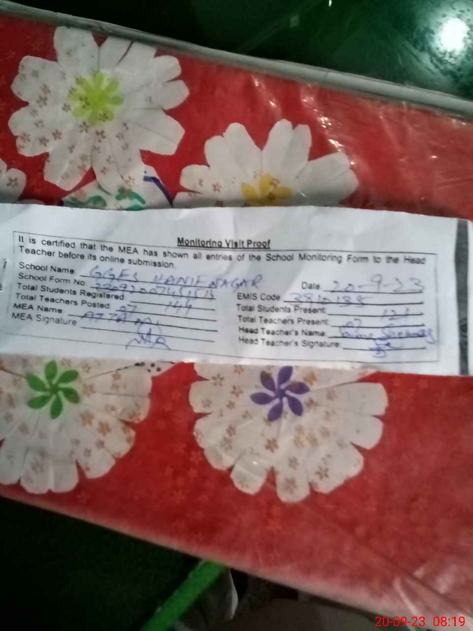 | Certified that this School was Inspected by the Undersigned MEA/DMO Today and the Information Stated Above is as Per Record. | |||||