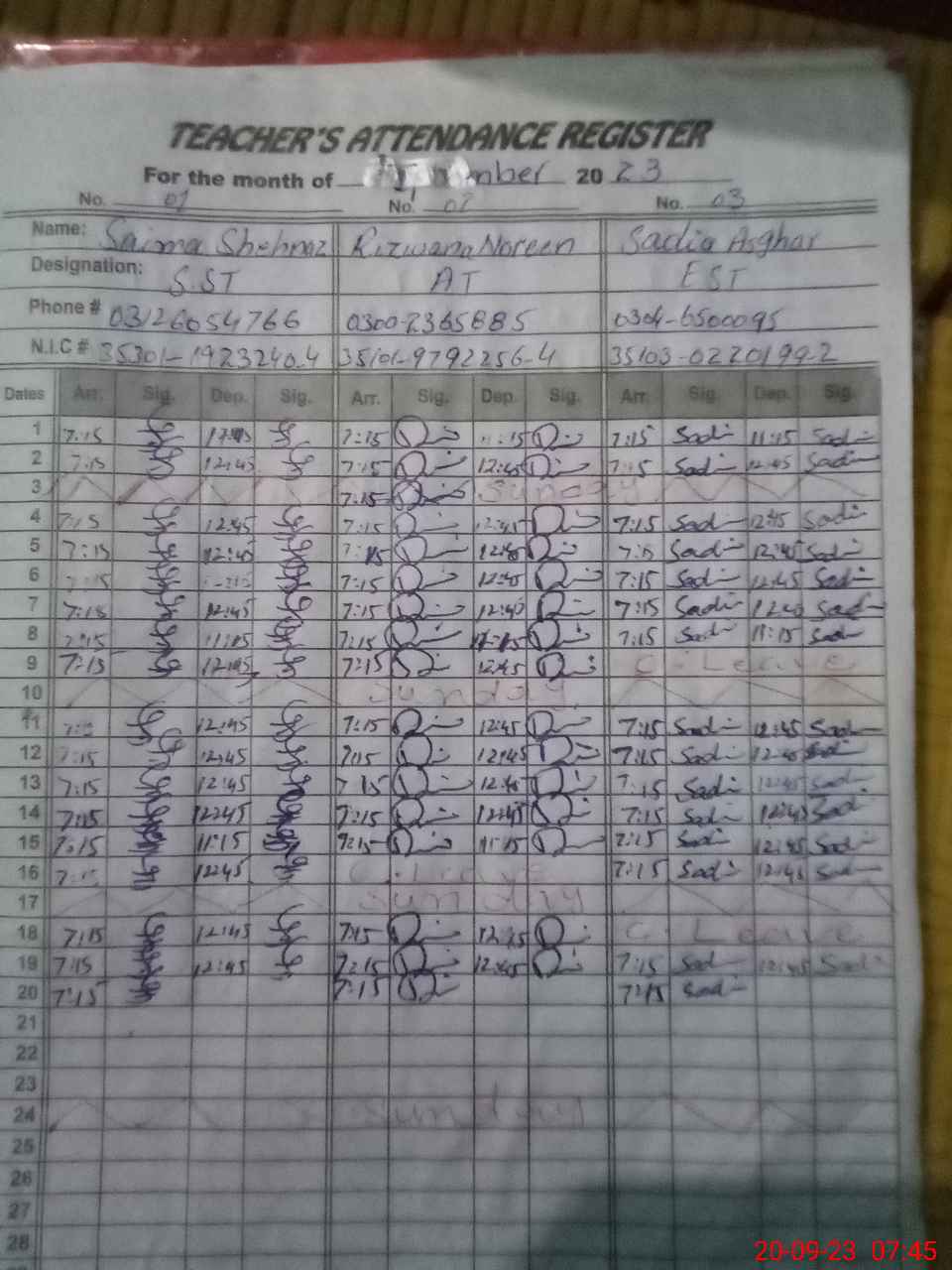 | Name: SA**** SH**** Designation: (School Headmaster's/Headmistress's) S.S.T.(Science) Phone/Cell Number: 03**** |
