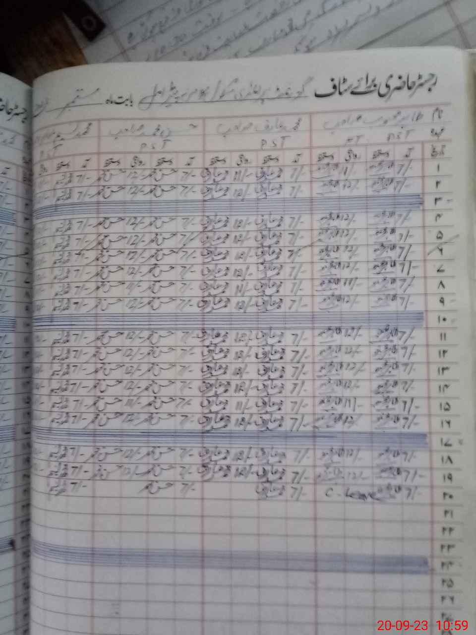 | CNIC | Full Name | Designation | R/C | Absence During Last Calender Month |