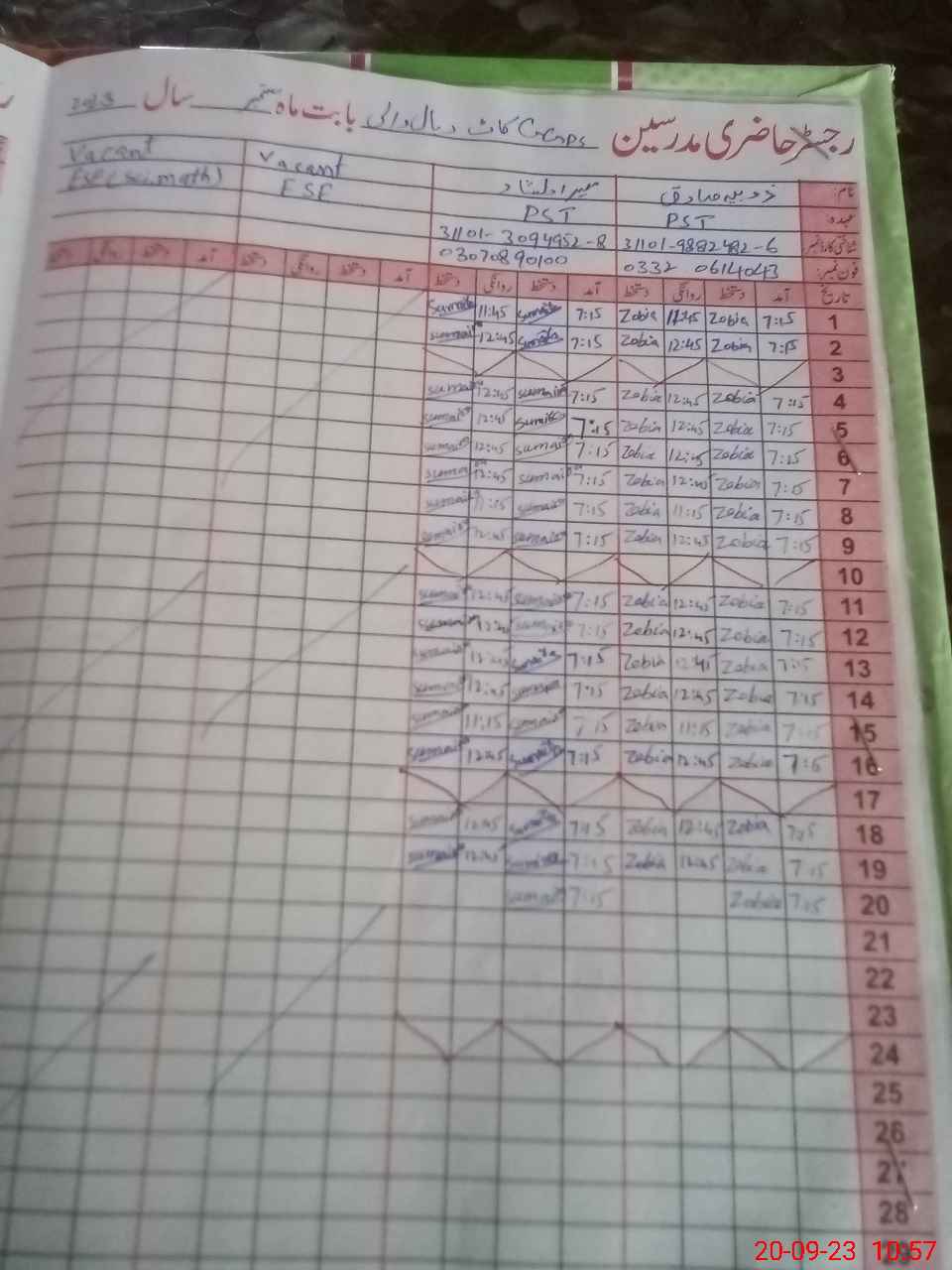 | Name: ZO**** SA**** Designation: (School Headmaster's/Headmistress's) ESE Sci Phone/Cell Number: 03**** |