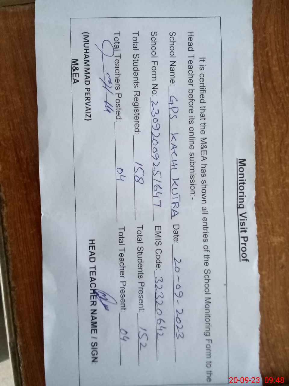 | EMIS Code: 32320642 | Name of School: GPS KACHI KUTRA | |||